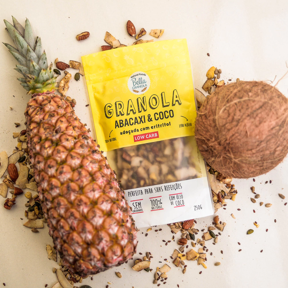 Combinando a refrescância do abacaxi com o sabor suave do coco, essa granola é perfeita para quem busca uma alimentação equilibrada, saborosa e naturalmente doce — sem açúcar refinado.