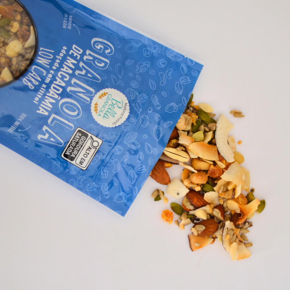 Feita com macadâmias, castanhas, coco e sementes selecionadas, nossa granola é perfeita para quem busca sabor e nutrição sem abrir mão da leveza.