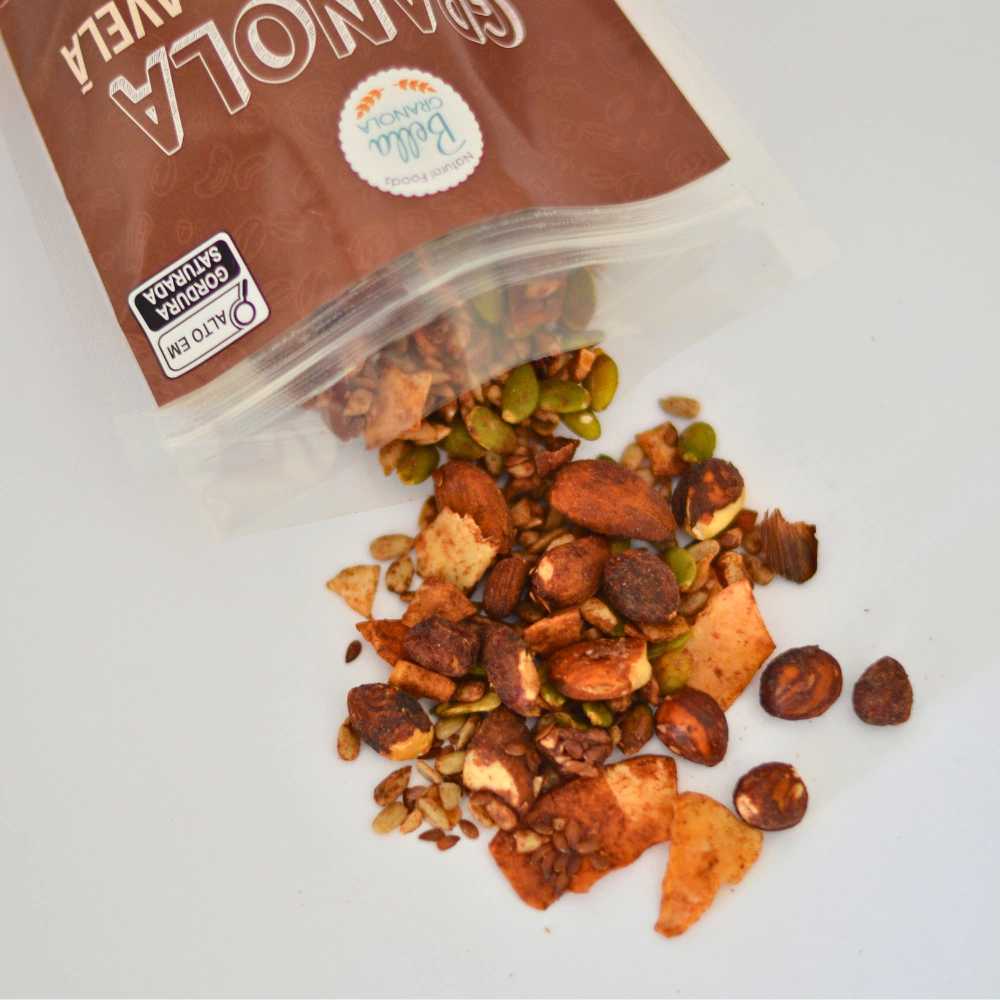 Essa granola é a união perfeita entre a intensidade do cacau, a cremosidade da avelã e a crocância de sementes e castanhas. Seu sabor suave lembra aquela clássica combinação de avelã com chocolate. Sem açúcar, sem glúten, low carb e com muito sabor!